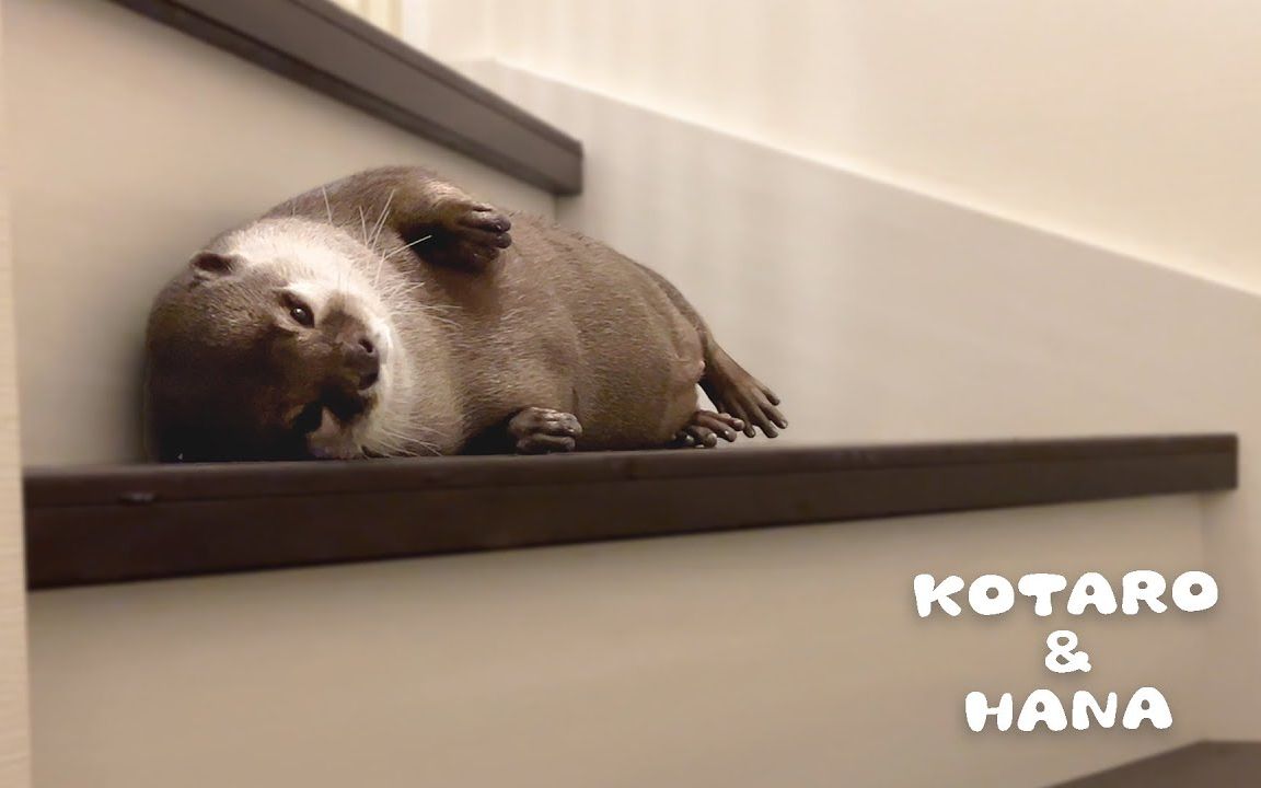 【Animal Circle】Otters' reaction to electric toothbrush【Kotaro & Hana】
