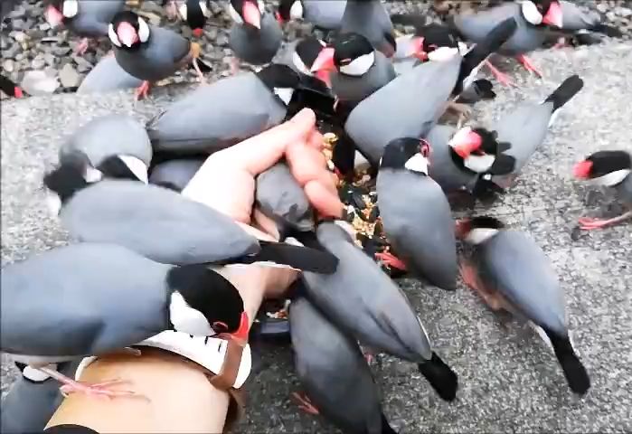 [Animals]The white Java sparrow is getting jealous