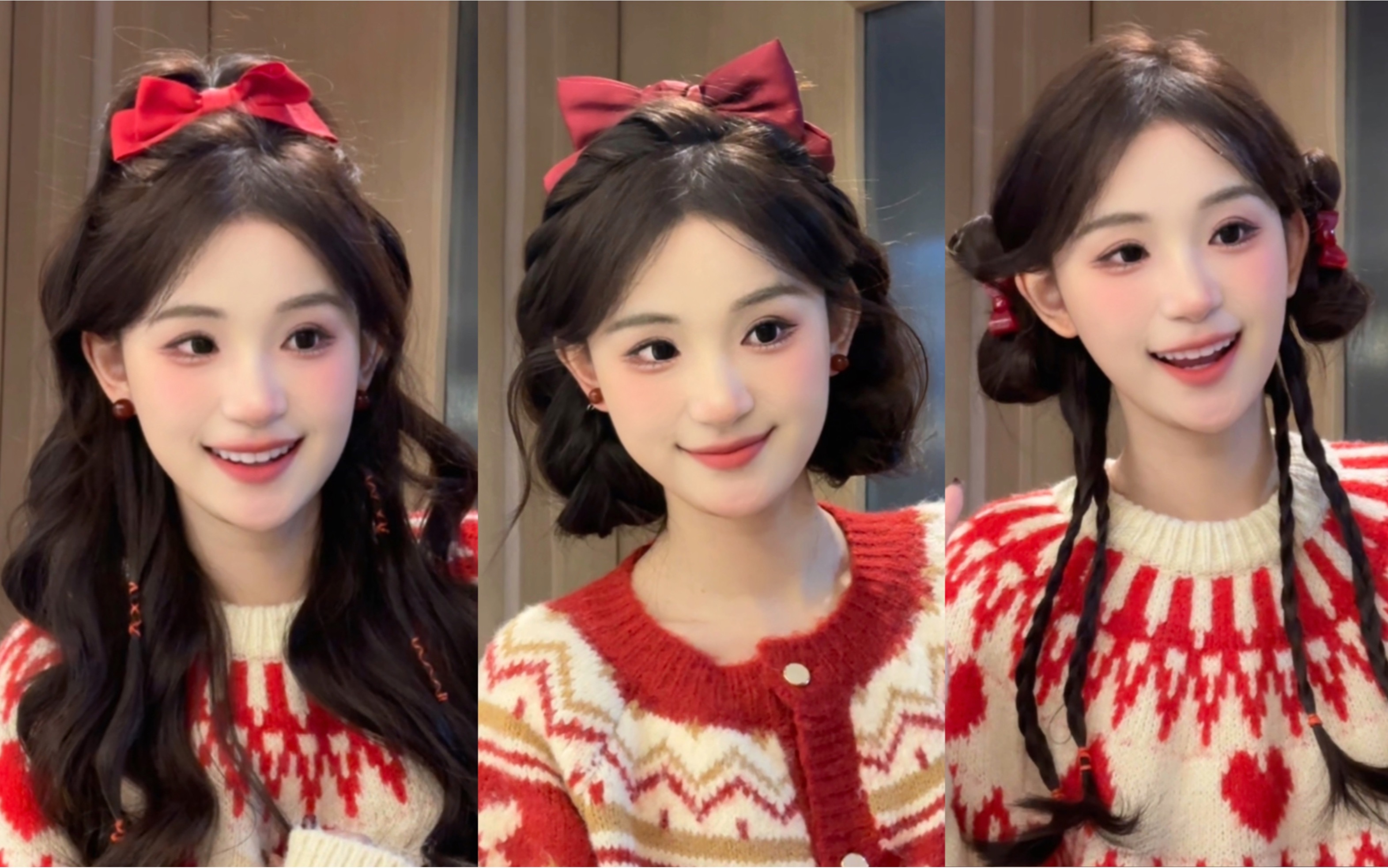 Zhao Lusi's Christmas twin ponytails //Learned in 1 minute ~ Beautiful on friends circle!