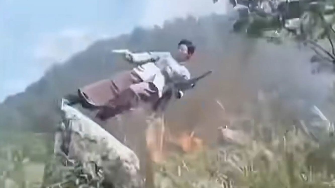 Even if the camera can't capture him, he is still interpreting his role vigorously...