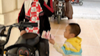 A bizarre scene unfolds on the street: a little girl’s head seems to have moved!