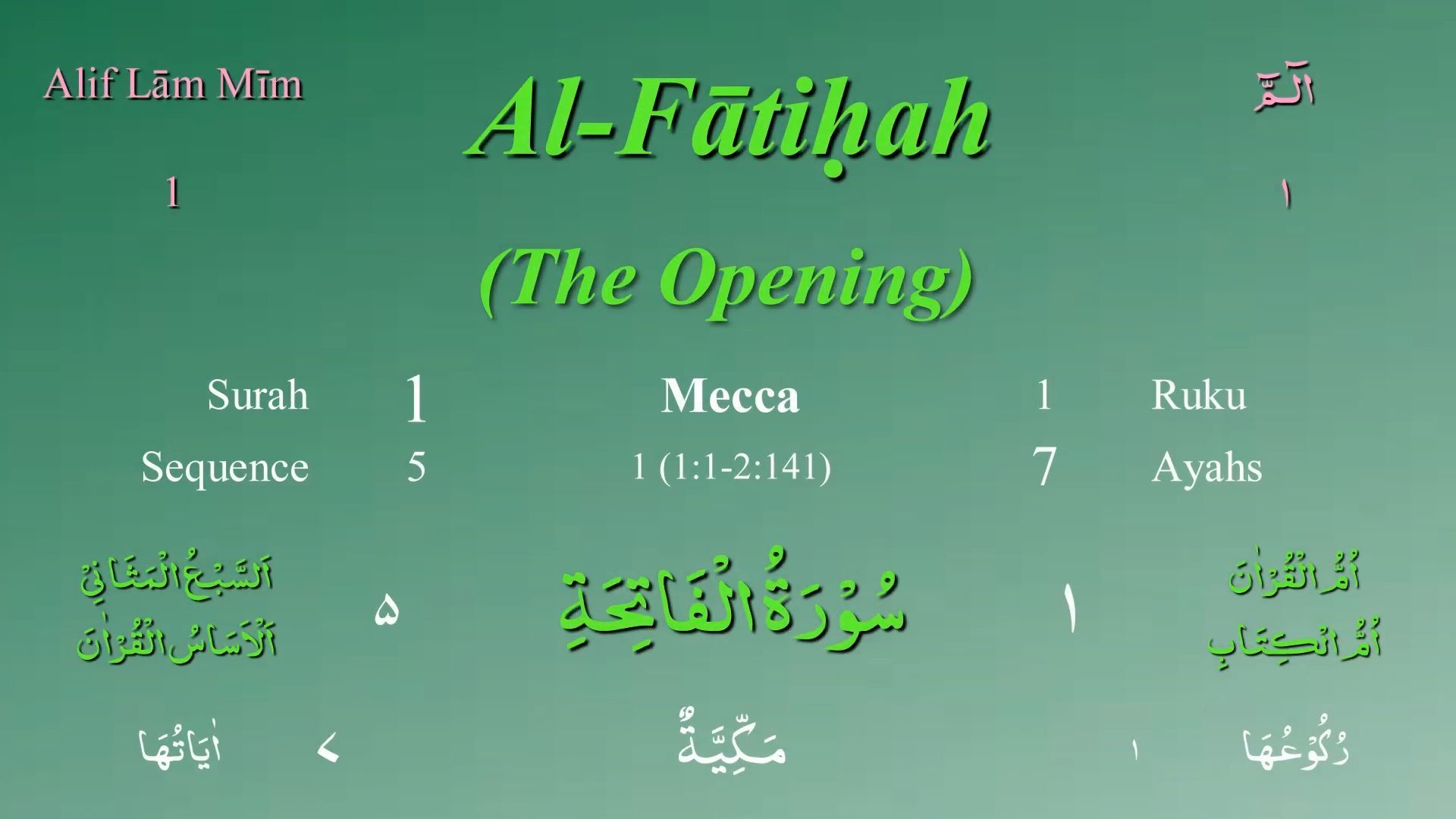 Quran 001. Surah Al Fatihah - The Opener