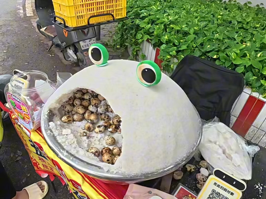 Setting up a stall to sell salt-baked quail eggs—today it hasn't stopped raining, and I can't sell t