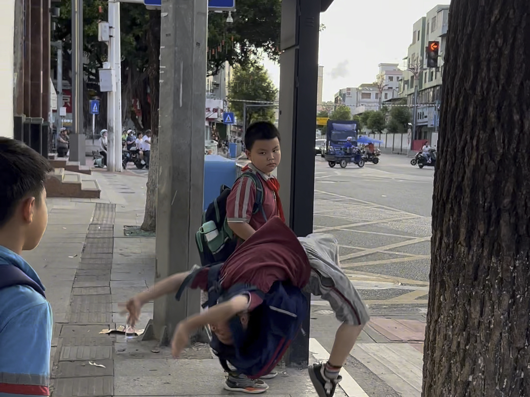 Primary school students dance together. The seven-year-old boy learned this set of street dance for