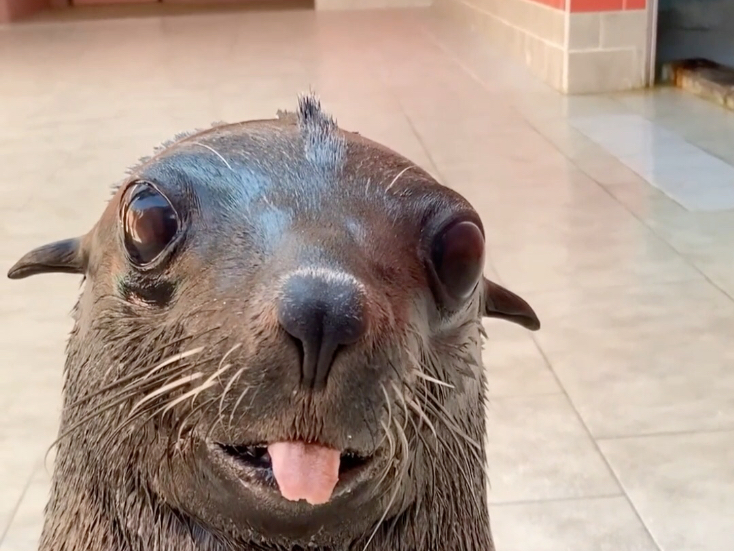 The 21-day-old baby seal choked on the water for the first time