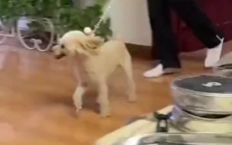 The little brother sits on the bed giving his sister a massage. As soon as he hears she’s thirsty, h