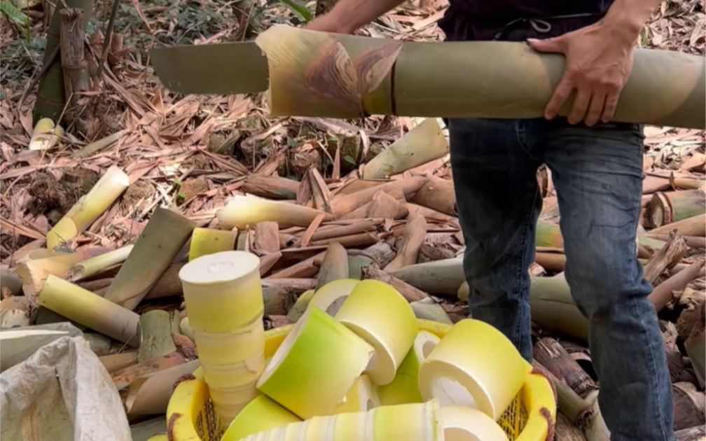 Girls can cut bamboo shoots like this