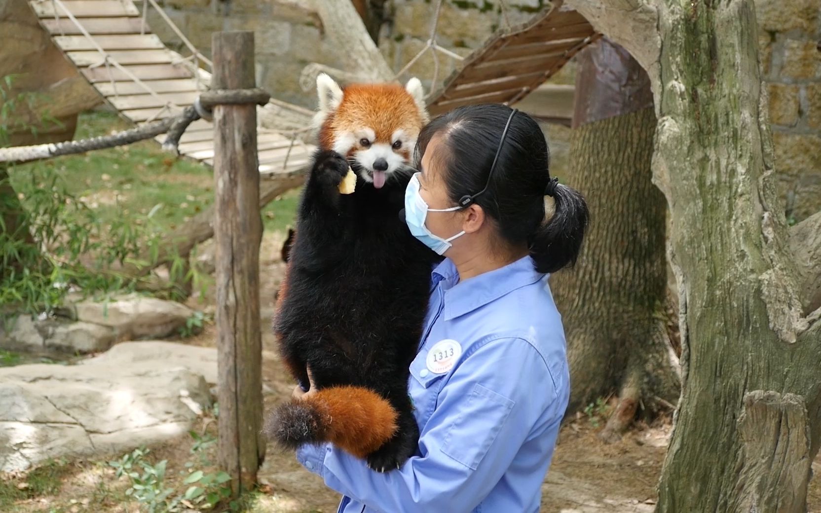 A golden monkey is eating apples elegantly
