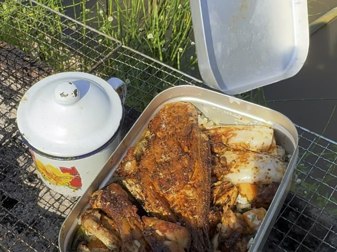 Outdoor cooking: The cat and mouse steak smells so delicious!