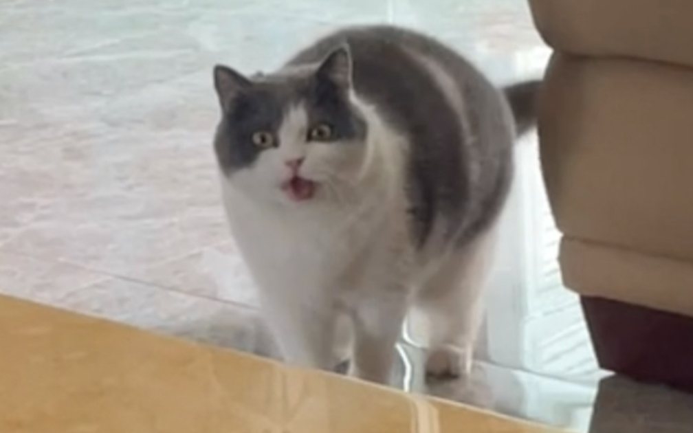 Before and after entering the door, they look like two different cats.