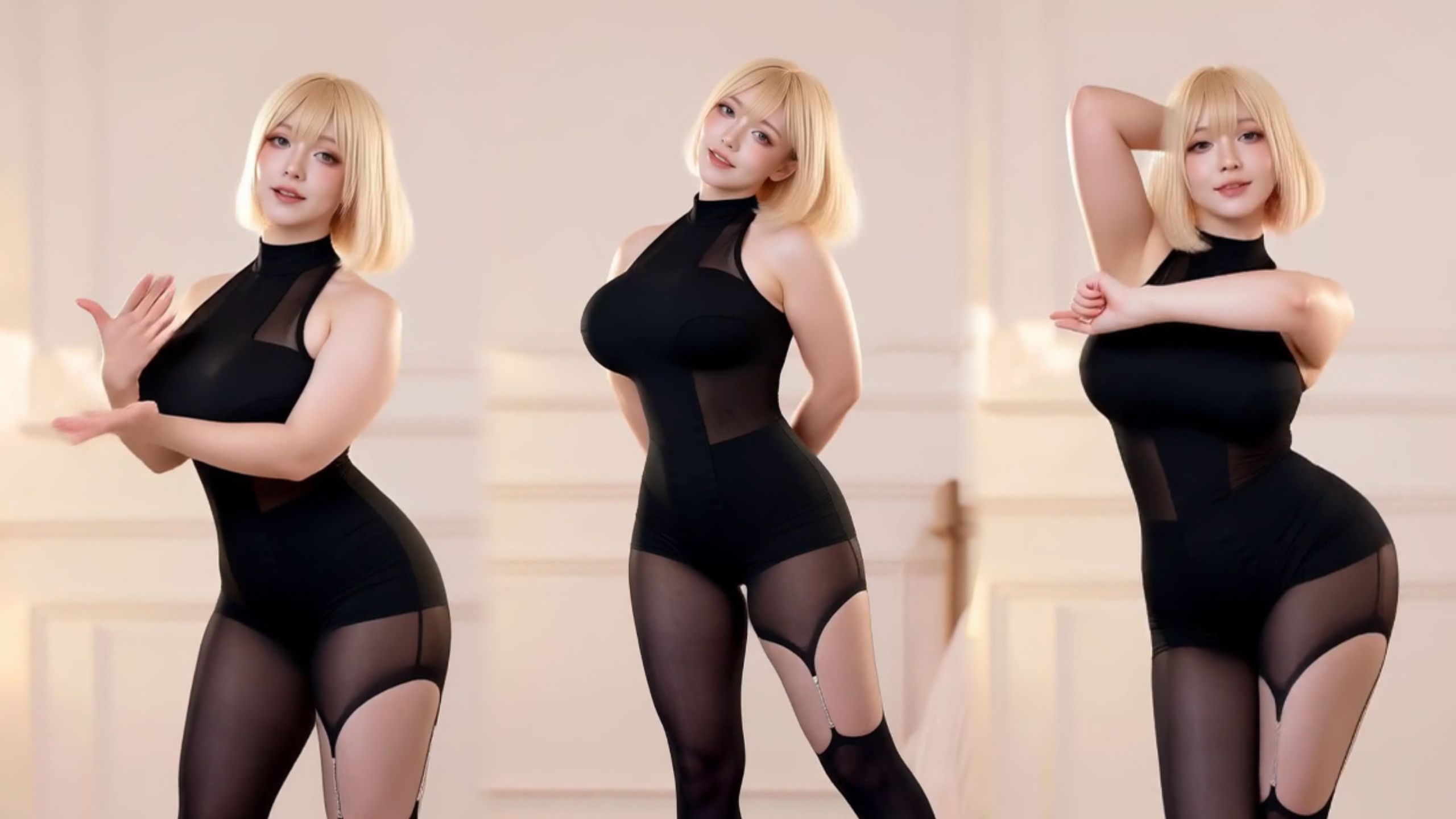 One-piece outfit and white stockings