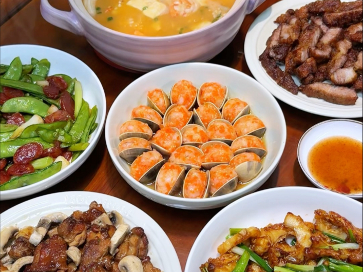 Braised Beef Noodles, Starch Sausage, Grilled Sausage, Sweet and Sour Pork Ribs, Greens, Boneless Ch