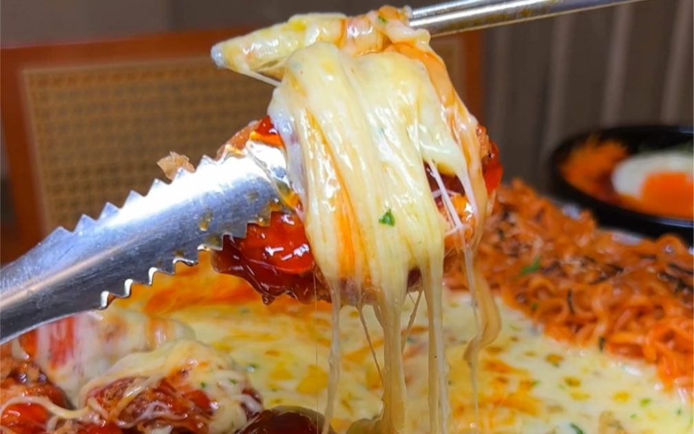 Chongqing-style stir-fried spicy pepper chicken giblets topped on noodles—so sour, spicy, and delici
