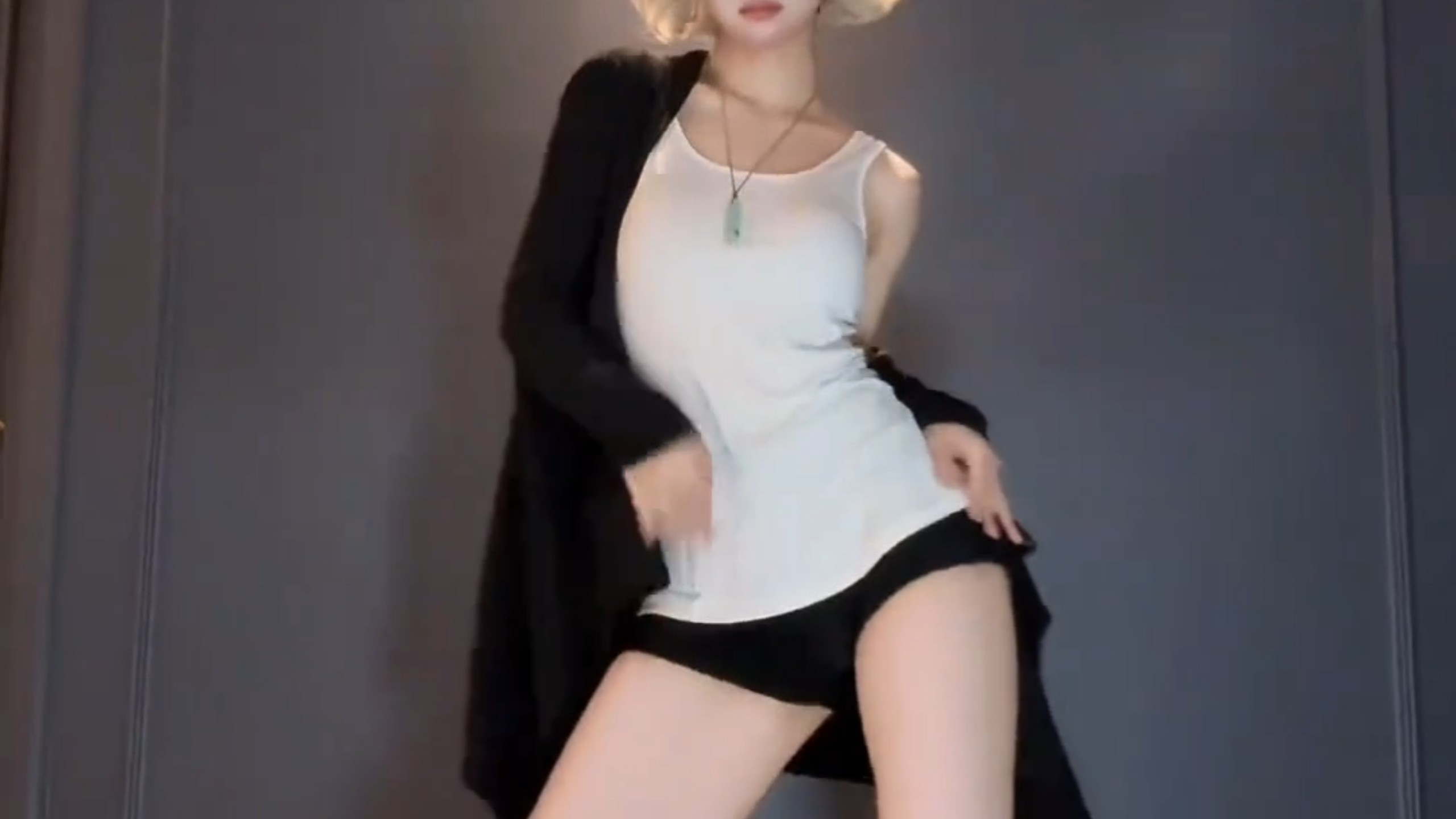 Passerby C, fishnet stockings, denim shorts, full-screen zoom