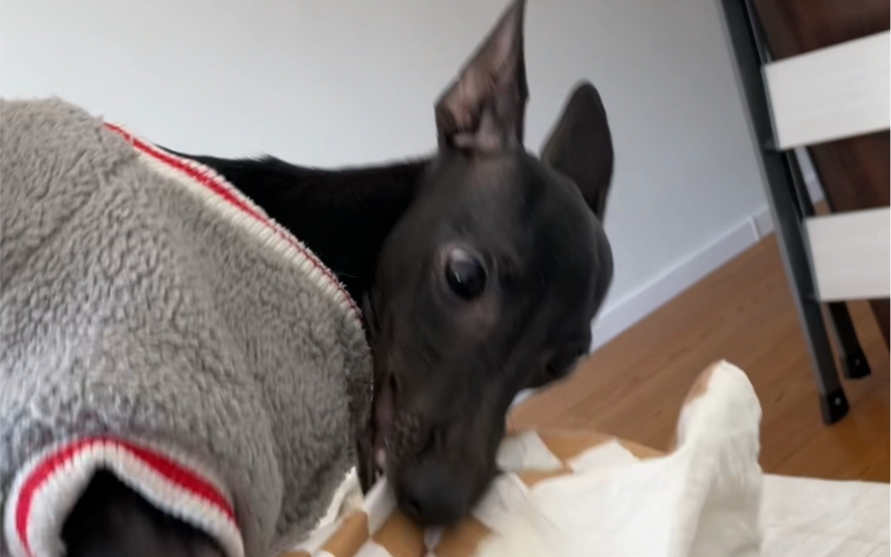 Testing the German Shepherd's reaction while wearing an alligator mask, hahaha!