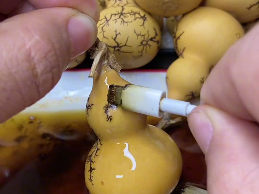 Handmade|Electric shock creates gourd artwork