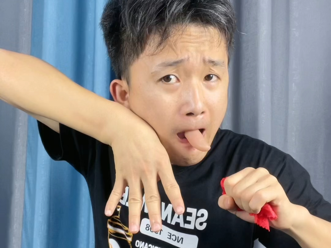 Sis performs a trick of drinking a beverage mid-air—Xiaopang is totally blown away!