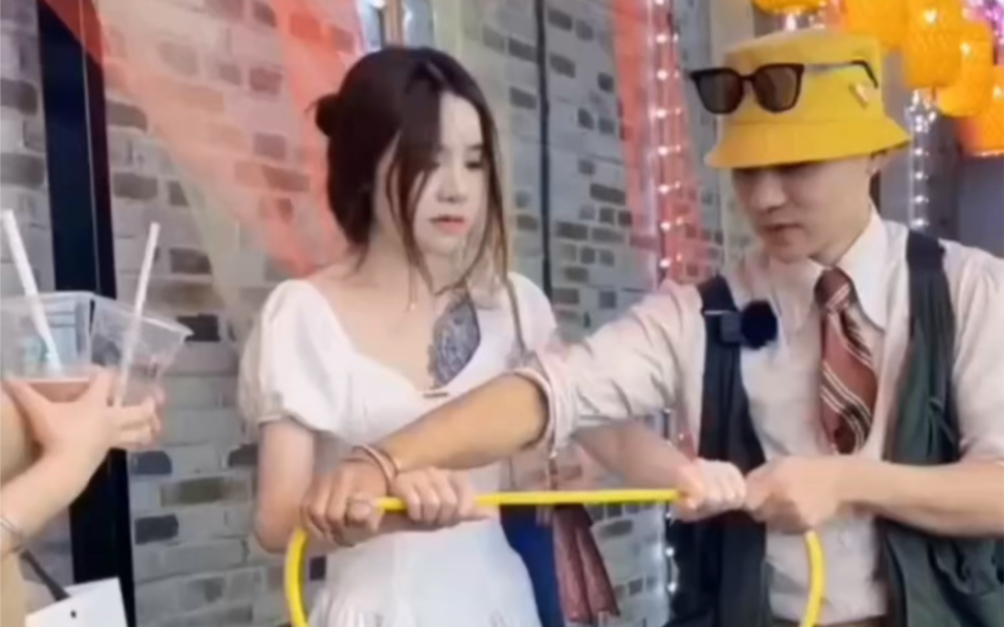 Pierce the wine bottle through the beautiful woman’s belly. Boys must learn this to flirt with girls