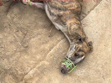 The dog's neck was strangled tightly, his face was swollen like a balloon, and he was so excited whe