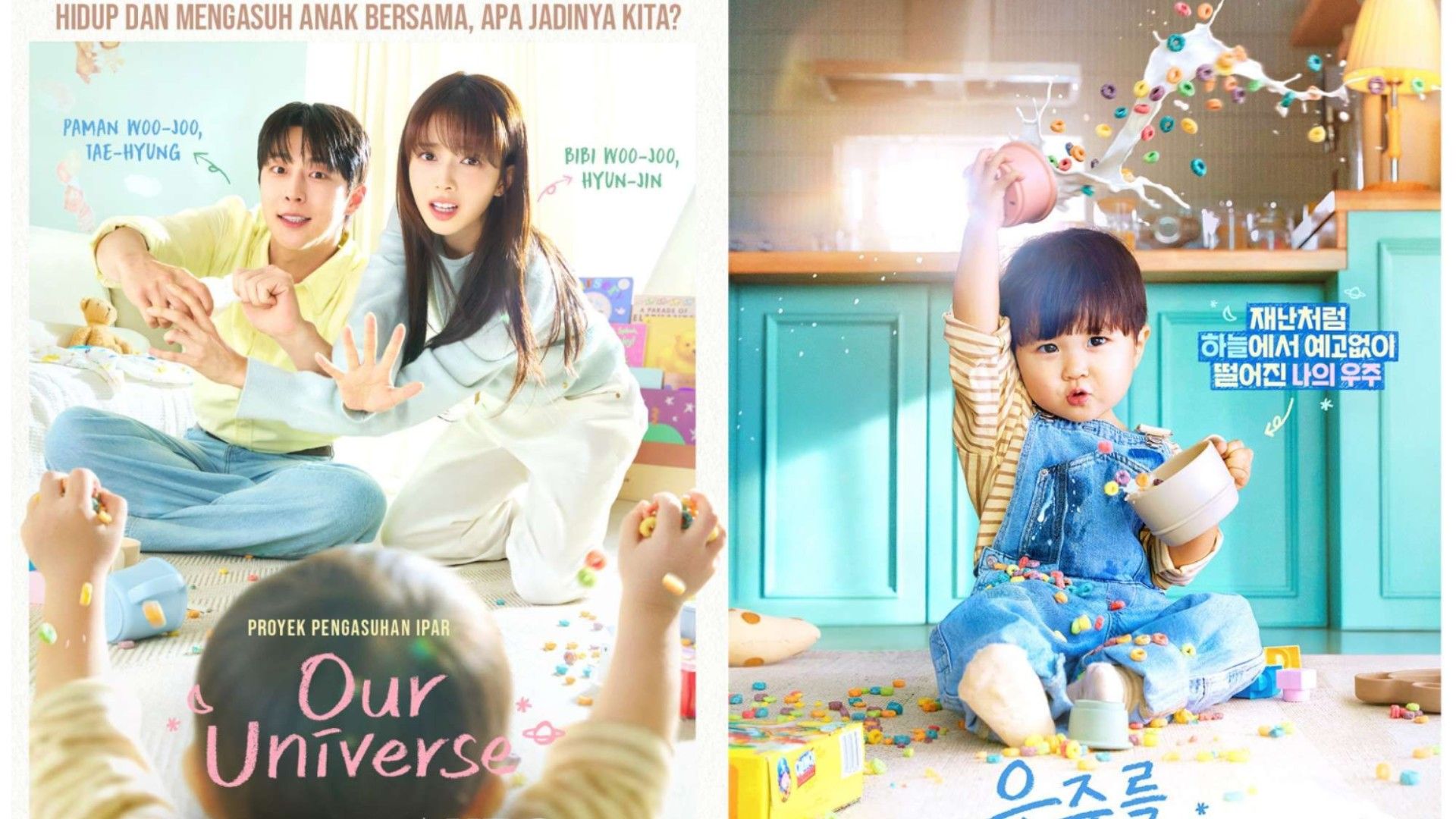 Our Universe (2026) Judul Asli: 우주를 줄게 Judul Lain: Ujureul Julge, I’ll Give You the Universe Sutradara: Lee Hyeon Seok, Jung Yeo Jin Genre: Komedi, Romantis, Drama, Keluarga Negara: Korea Selatan Jenis: Drama Jumlah Episode: 12 Tayang: 4 Februari 2026 - 12 Maret 2026 Tayang Setiap: Rabu, Kamis Jaringan Asli: tvN Durasi: 1 jam 10 menit Pemeran: Bae In Hyuk sebagai Seon Tae Hyeong Roh Jong Eui sebagai Woo Hyeon Jin Park Seo Ham sebagai Park Yoon Sung Park Yu Ho sebagai Woo Joo Gu Sung Hwan sebagai Cho Mu Saeng Choi Gyu Ri sebagai Baek Se Yeon Oh Hyun Joong sebagai Kim Ui Jun Jin Seo Yun sebagai Choi U Jeong Sinopsis: ‘Our Universe’ mengisahkan Seon Tae-hyung dan Woo Hyun-jin, dua orang ipar yang sejak awal tidak akur dan kerap terlibat pertengkaran. Kehidupan mereka berubah drastis setelah kakak mereka meninggal dunia dalam sebuah kecelakaan. Kakak mereka meninggalkan seorang bayi berusia 20 bulan bernama Woo-ju. Demi keponakan mereka, Tae-hyung dan Hyun-jin terpaksa tinggal bersama dan berbagi tanggung jawab sebagai wali. Seon Tae-hyung digambarkan sebagai asisten fotografer yang mencintai kebebasan, namun menyimpan luka emosional dari masa lalunya. Sementara itu, Woo Hyun-jin adalah lulusan perguruan tinggi berprestasi yang memimpikan kehidupan stabil dan sederhana. Dalam proses membesarkan Woo-ju, keduanya dihadapkan pada berbagai tantangan pengasuhan yang memaksa mereka belajar bekerja sama dan saling memahami. Seiring waktu, hubungan mereka pun perlahan berubah, membuka ruang bagi perasaan baru. Kehadiran Park Yoon-seong, rekan kerja Hyun-jin sekaligus cinta lamanya, turut menambah dinamika konflik. Sementara itu, Woo-ju menjadi penghubung emosional yang menyatukan mereka semua.