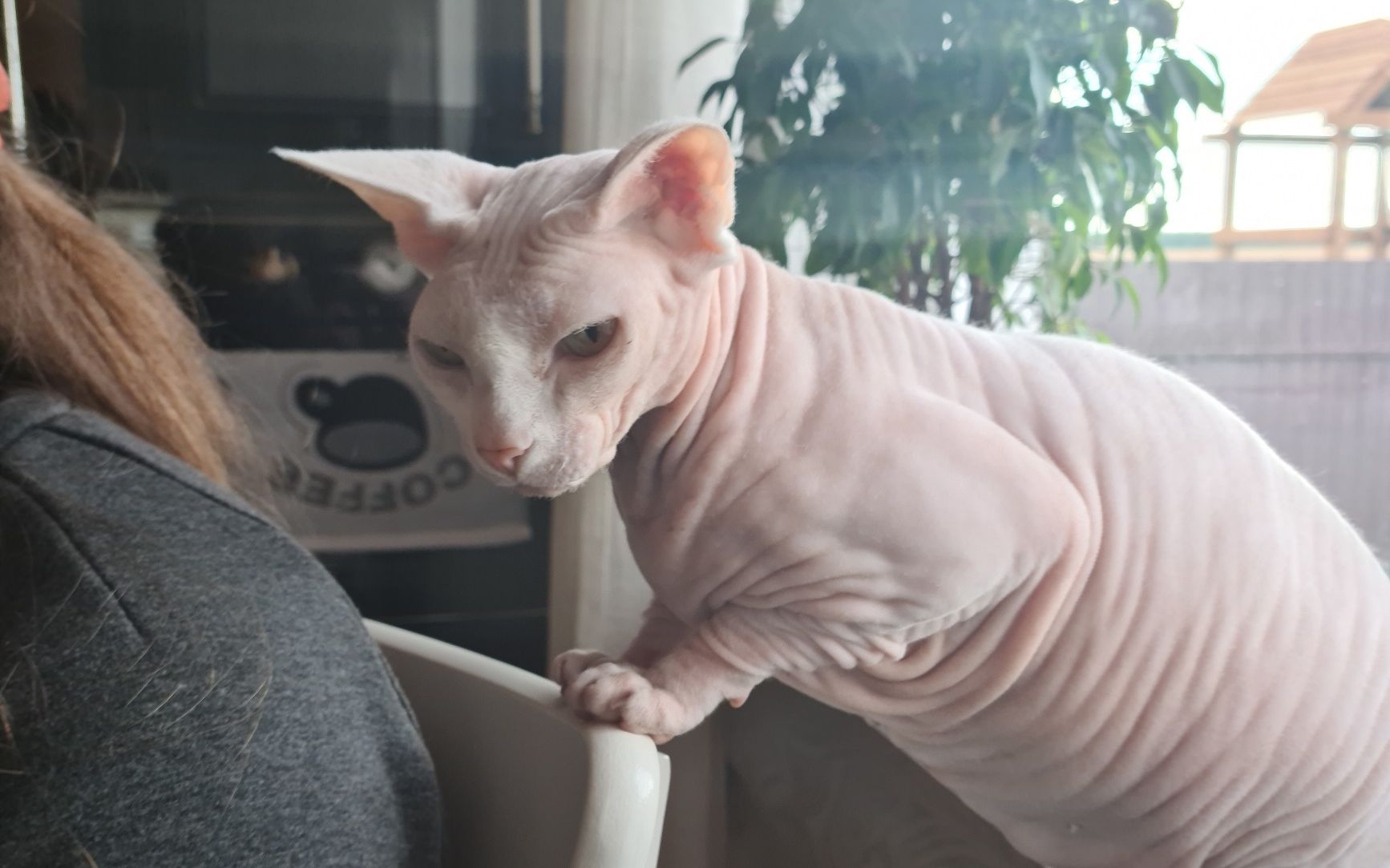 Do you react exactly like this sphinx cat when someone touches you with a cold hand?
