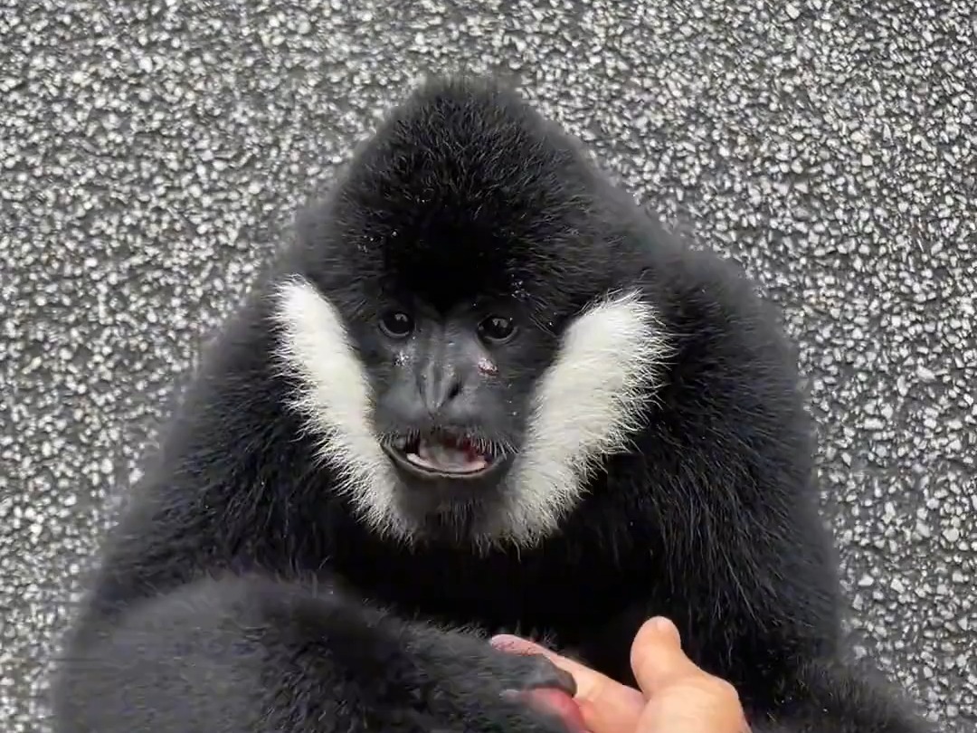 Mom’s giving little monkey Sena a bath—their tail in the front is surprisingly long!