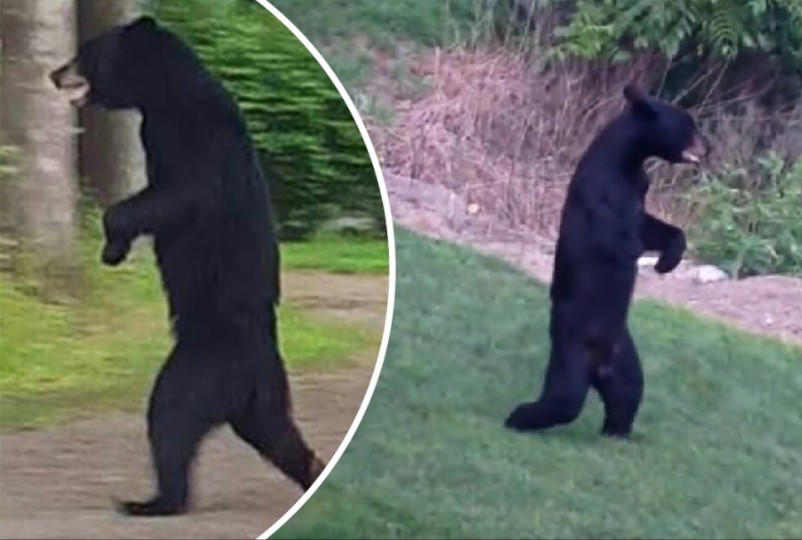 A wild black bear came to the door to help it sweep the snow