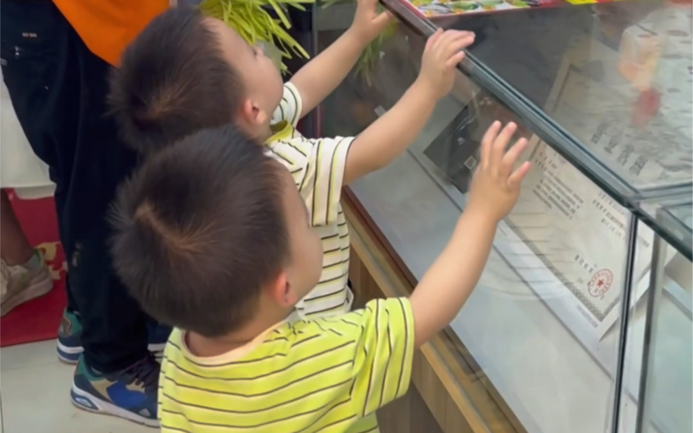 The twin babies became interested in the microphone and queued up to "talk"~