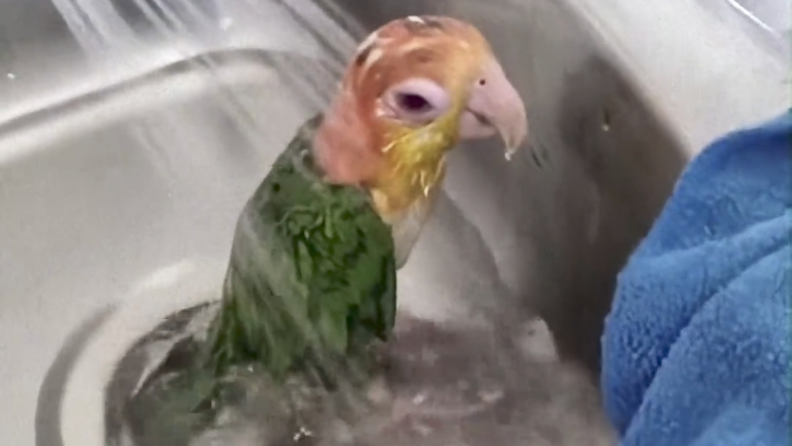 When the parrot realizes that it is not the enemy, but the owner's hand: