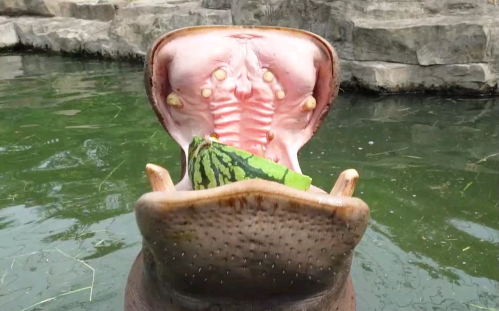 【Hippo】Eat a watermelon and squeeze out all the juice. Let’s cut it into pieces! (The water in the h