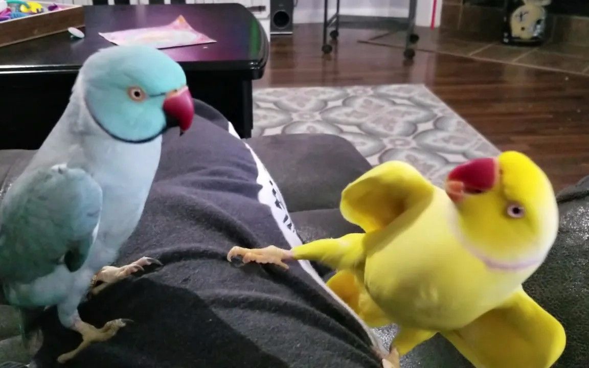 When the parrot realizes that it is not the enemy, but the owner's hand:
