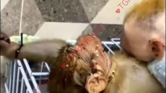 Mom’s giving little monkey Sena a bath—their tail in the front is surprisingly long!