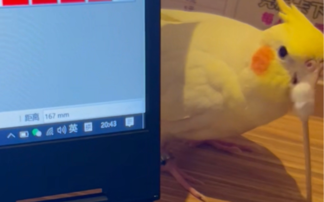 When the parrot realizes that it is not the enemy, but the owner's hand: