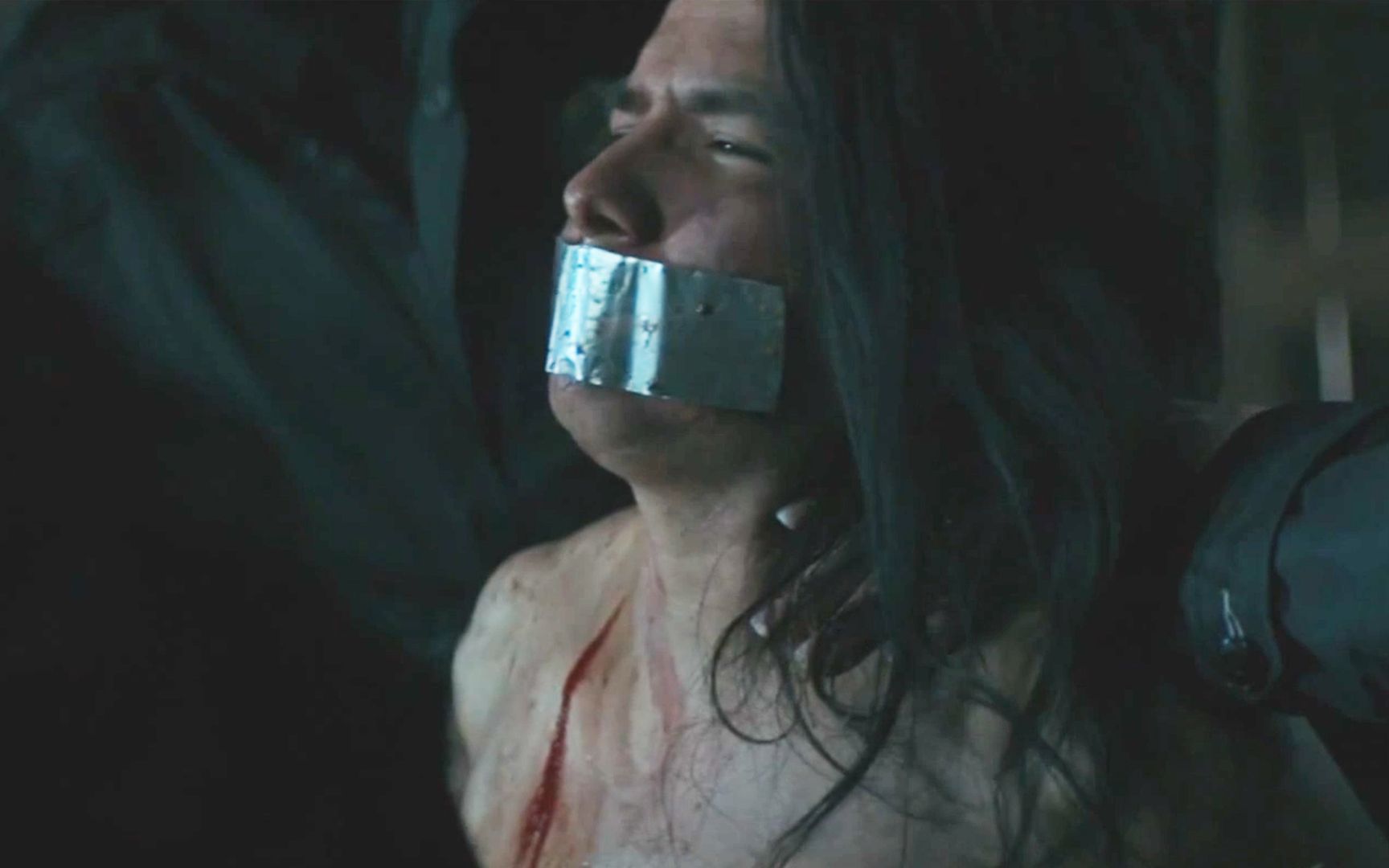 A woman is stripped of her underwear and repeatedly raped by thugs, while her spineless husband can