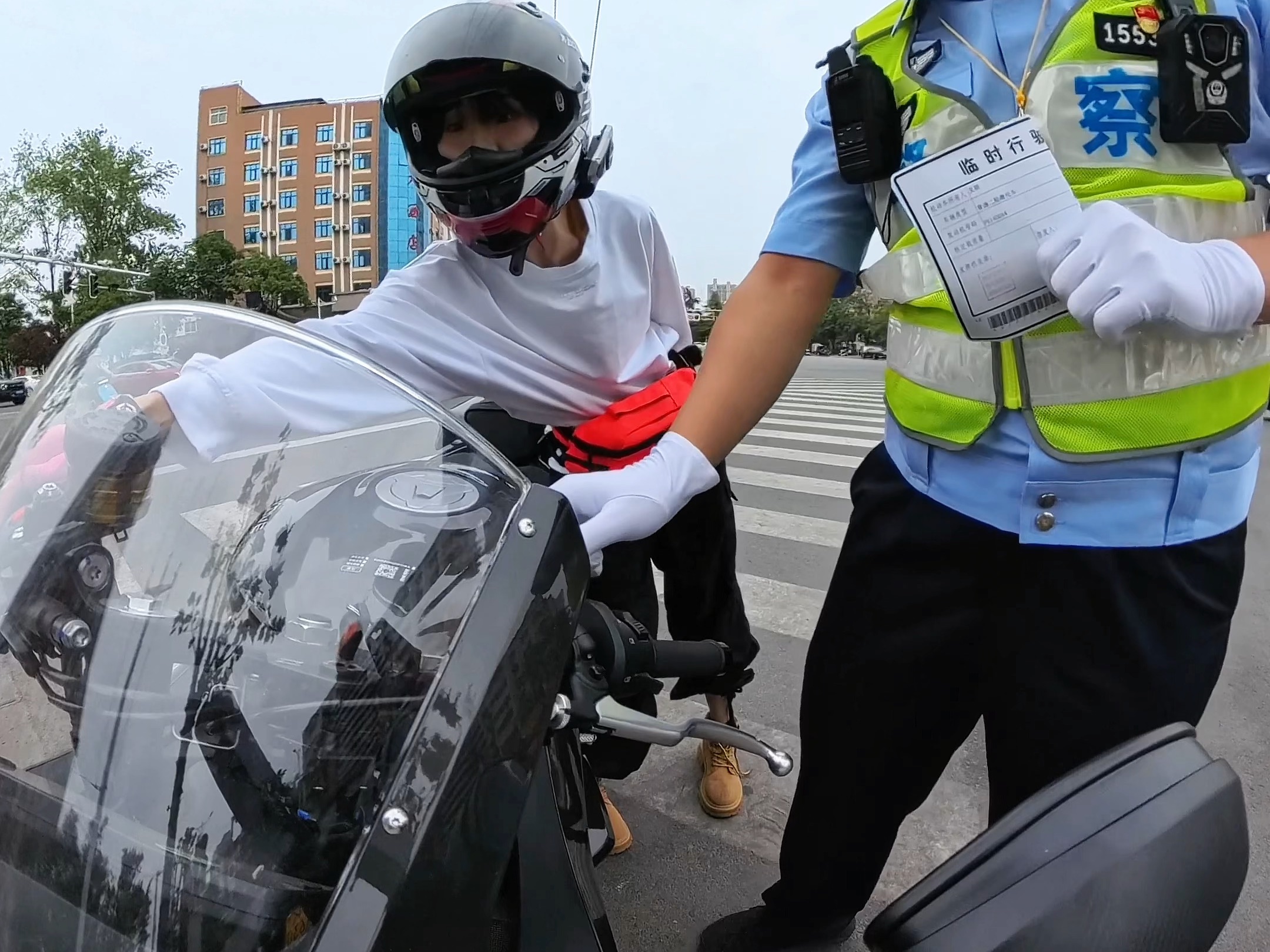 When Shushu drove onto the motorcycle, JJ: Shushu in front of you, please pull over, you are speedin