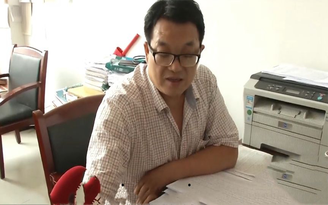 A 70-year-old stingy old man hangs a pickled vegetable above his head while eating, just staring at