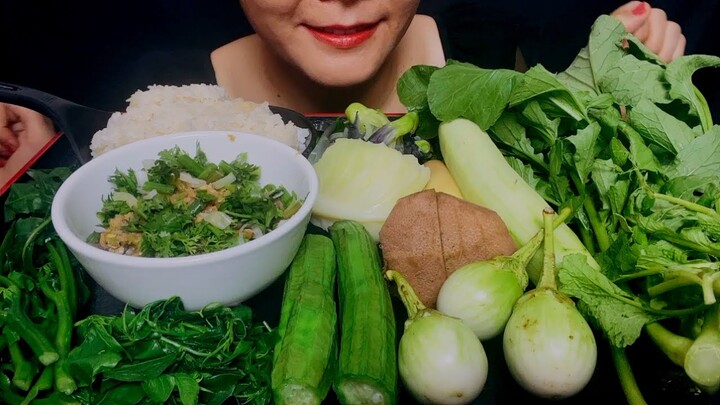 Chili Mukbang.Mackerel Chili Paste or Chili Sauce With Fresh Veggies & Boiled Veggies.Thai Nam Prik
