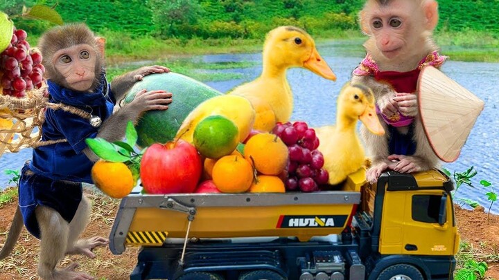 ลูกลิง บิม บิม รถบรรทุกหักขณะเก็บเกี่ยวผลไม้ และรับความช่วยเหลือจากลูกสุนัข