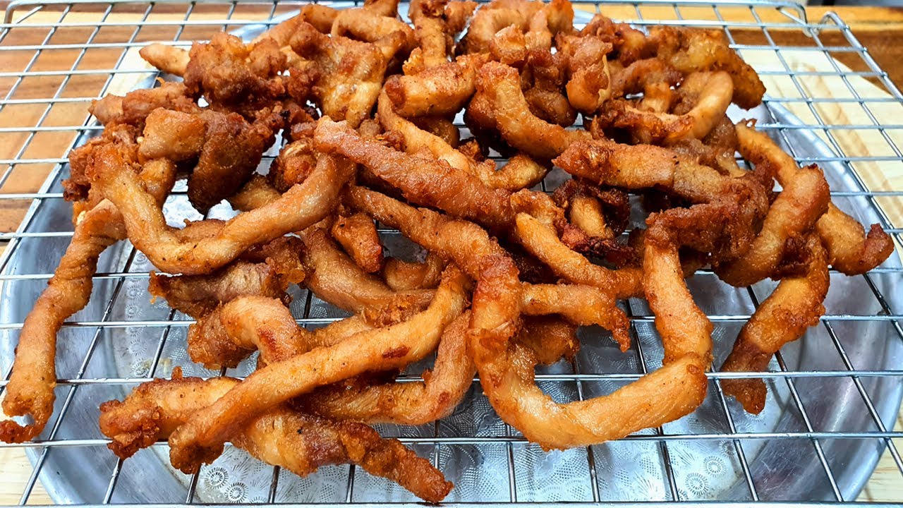 หมูทอดตลาดนัด หมูทอดเสียบไม้|หมูทอดหม้อ ตับทอด ไม้ละ10บาท Fried pork