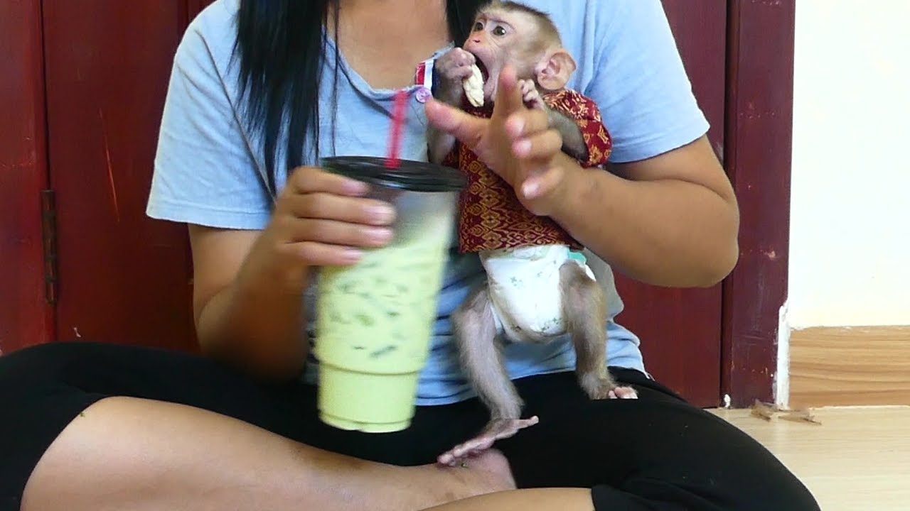Bravo!! Orphan Baby monkey drinking milk with milk bottle