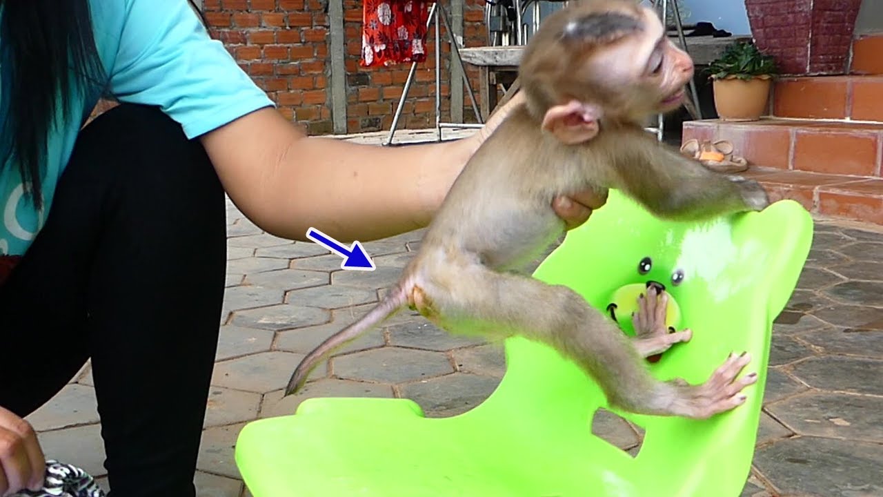Wow!! Adorable Baby Monkey Maku Poop Outside While Mom Take A Bath For Him