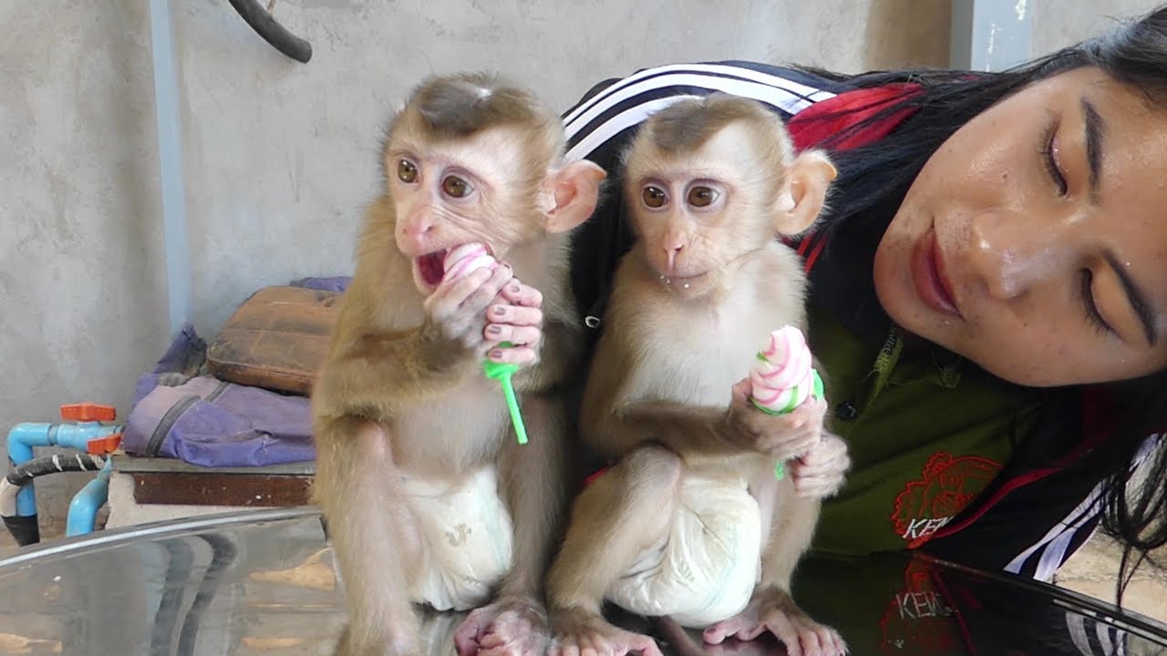 Baby Monkey Eat Ice cream so yummy!! Super Cute Tiny Baby Maki Happy Eat Ice cream With Mom