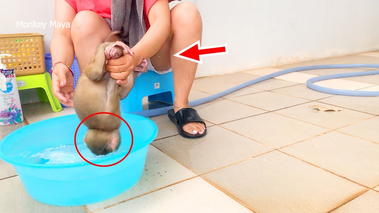 Monkey Baby Maku goes to the toilet and changes diaper | Maku Cry When Mom Clean diaper