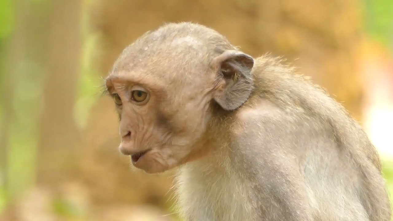 So Worry Janet Monkey Walking With 2Legs On South Gate Of Angkor Thom Temple, Please Come Down Baby