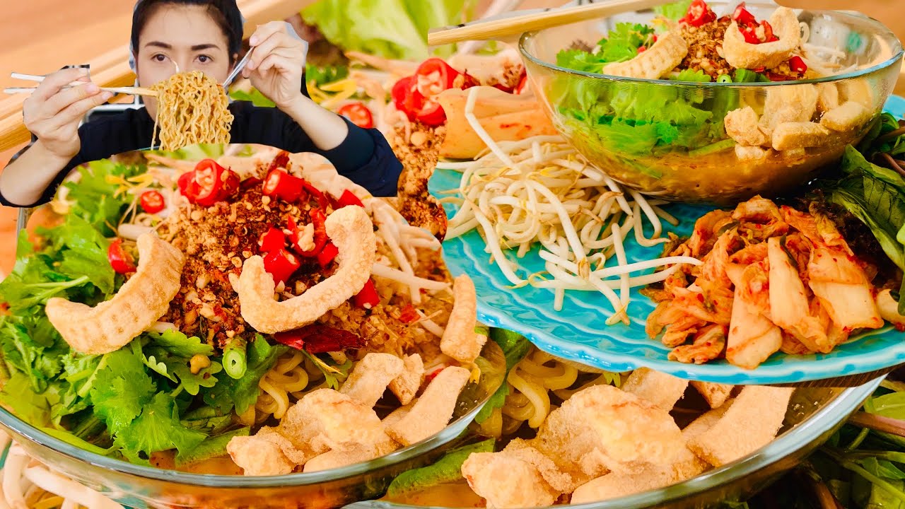 ตำกุ้งสดลายเสือท้องปลาแซลม่อนรสเด็ดเผ็ดตายคืน #ขนมจีน แซ่บลืมลูก ผักกรอบสนั่นหวั่นไหว มาเด้อจ้า😋😋