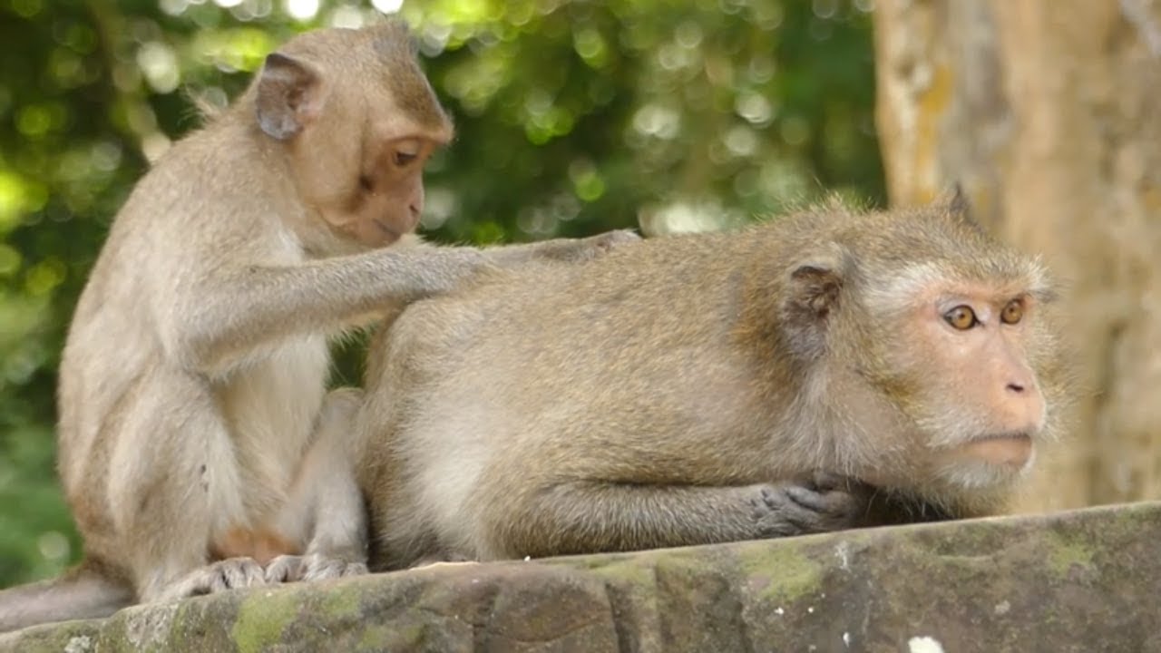 Tiny Baby Monkey Trying To Make Fun With Giant Monkey, Baby Monkey Playing With Big Monkey
