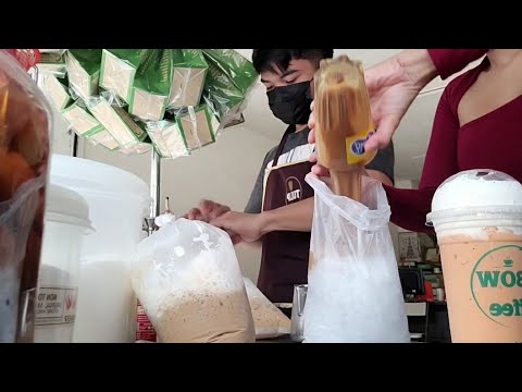 สองคนช่วยกันชงแทบไม่ทัน!ลูกค้ามาไม่ขาดสายใส่ถุงกระดาษหรือใส่แก้วก็อร่อยคุ้มค่าสมราคาค่ะ