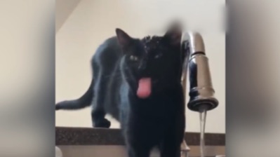 น้องแมวหาวิธีออกจากประตู