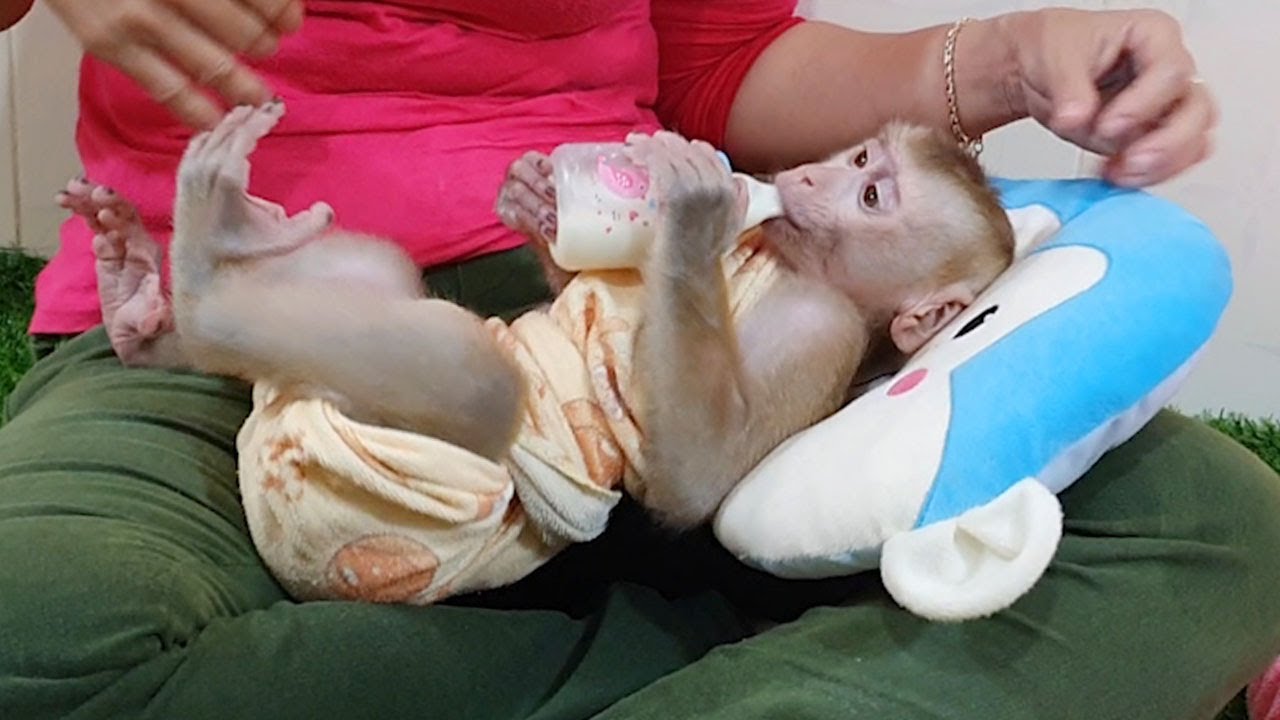 Princes Maya So Tired After Play Full Day, Grandma Comfort Baby Monkey Maya Sleeping Well