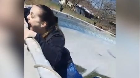 เด็กผู้หญิงตกลงไปในสระน้ำ